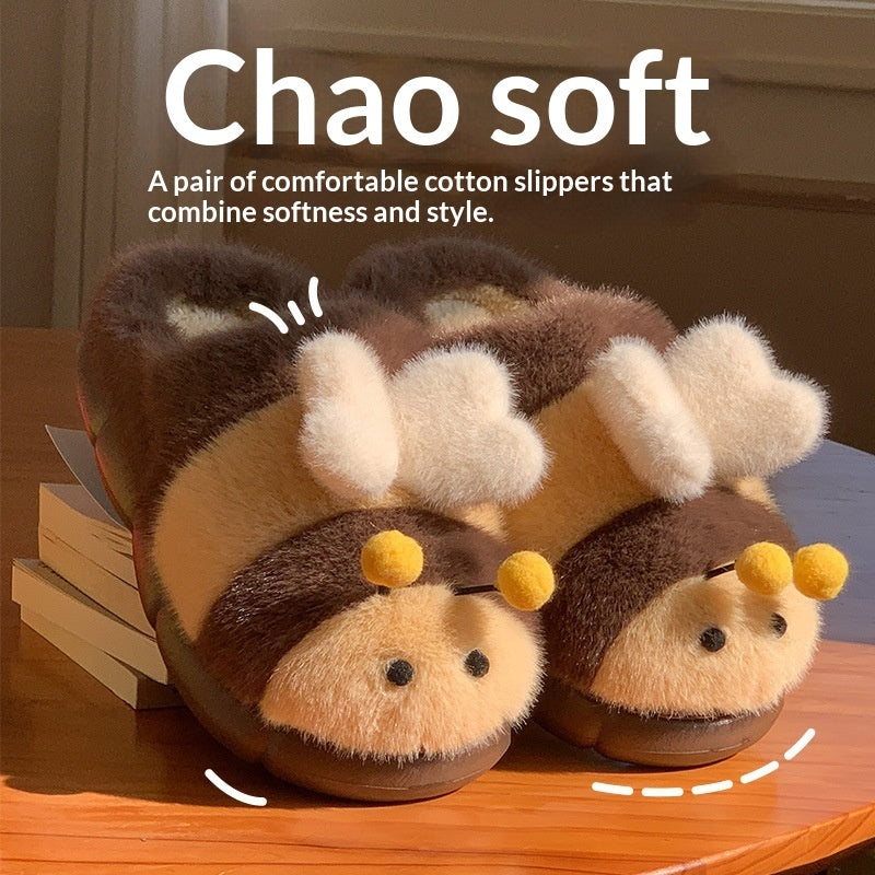 Cute Little Bee Fuzzy Slippers, Women's New Autumn Collection