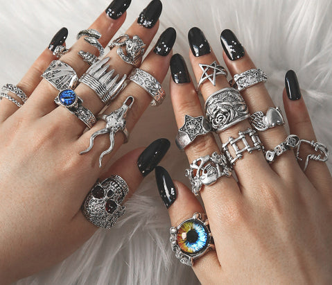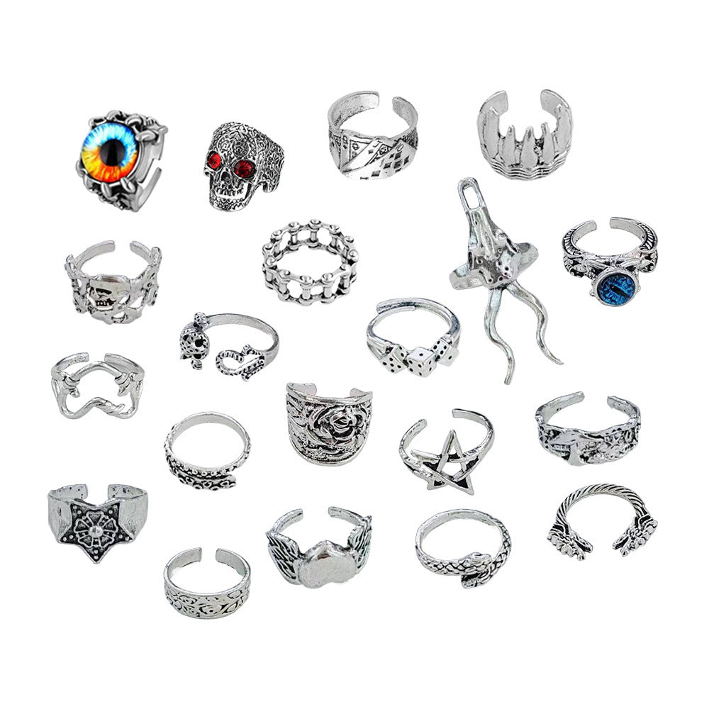 Retro Animal Ring With An Exaggerated Punk-style Devils-eye Skull And Playing-card Design