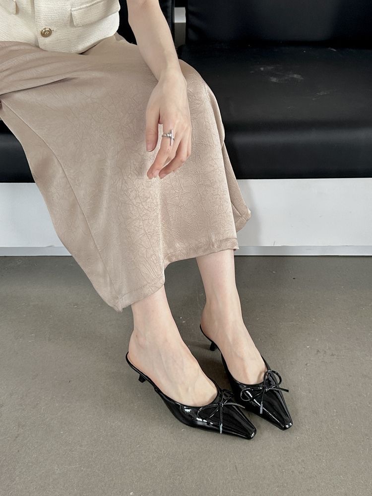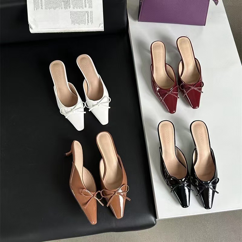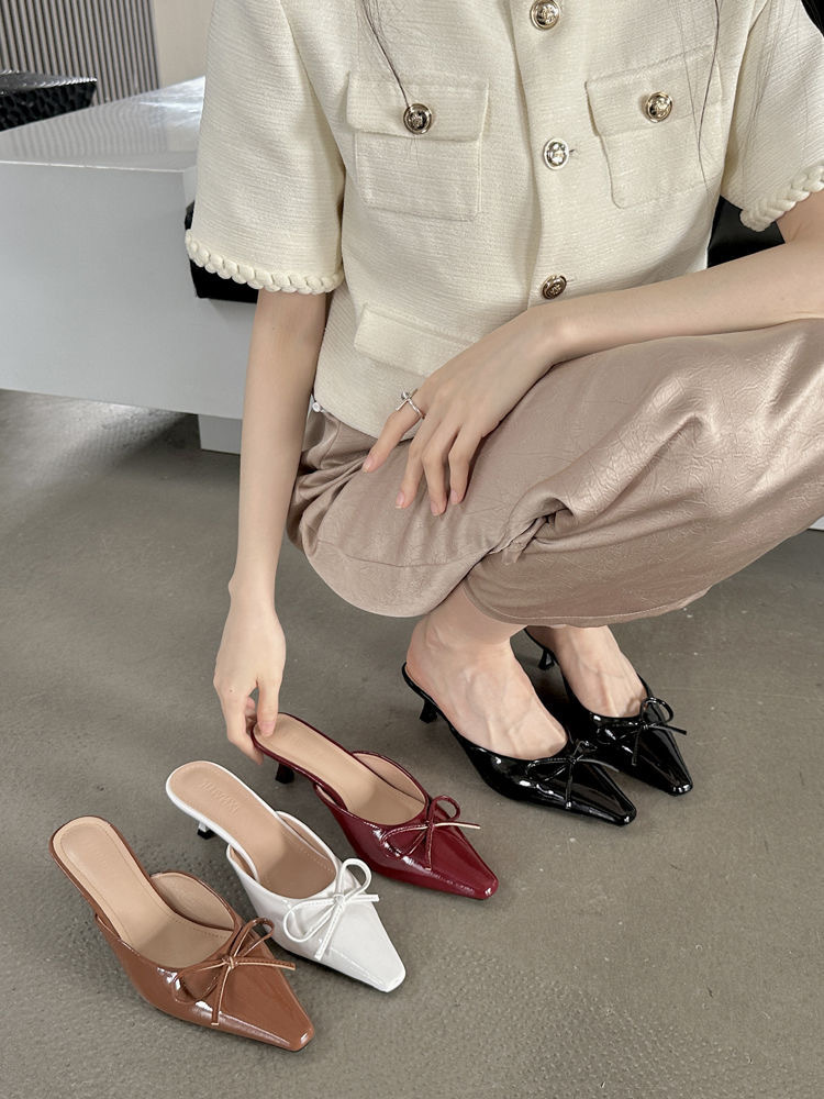 Womens Versatile Fashionable Low-Heel Bow Slippers
